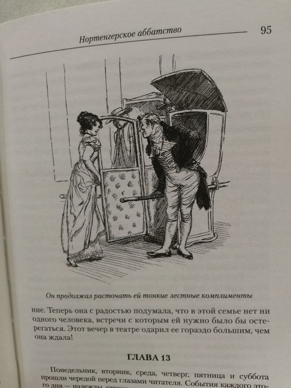 Нортенгерское аббатство на меня большого впечатления не произвело. Возможно, как раз оттого, что любовной линии там минимум)) А Генри ведь и не был влюблен в героиню, просто она была ему приятна, не более. А вот Кэтрин напридумывала себе роман, сама же в него и поверила, а тут еще и будущий свекр в него поверил! А Генри, как благородный джентльмен, был вынужден просить ее руки, чтобы не прослыть обманщиком и легкомысленным повесой. Но думаю, семья у них получилась крепкая и честная)