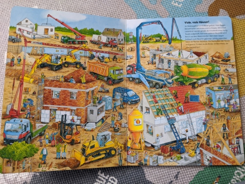 Виммельбухи у нас как не шли, так и не идут. Единственный, который периодически достается, это вот этот про стройку. Для меня столько новой лексики на немецком)))