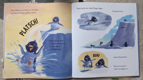 Сын у нас стеснительный, поэтому покупаю потихоньку книги о храбрости и о дружбе. Эта история про пингвинов очень понравилась. Потому что храбрость - это не отсутствие страха, а умение вопреки страху помочь другу/спасти друга, на этом построена история. Эта книга наполняет меня чем-то очень светлым🤗 ну и пингвины необычайно милы.