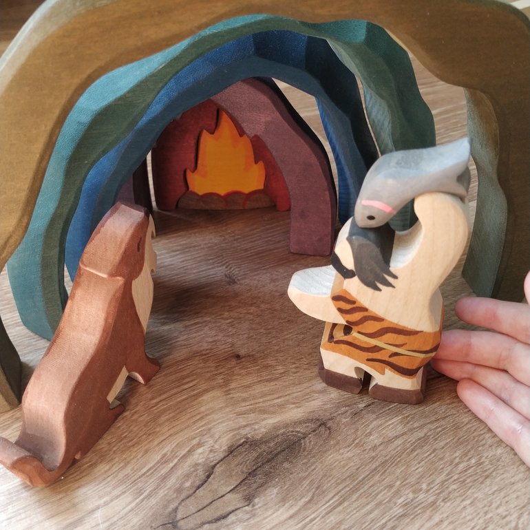 🔍 Для дошкольника сюжетные игры играют довольно значимую роль. Скакать в шкуре и разводить дома костёр я не очень-то хотела, потому набор для инсценировки жизни первобытных людей пришёлся несказанно кстати. Плюс тактильные ощущения от игры с деревянными игрушками совершенно другие, нежели от привычных пластиковых.