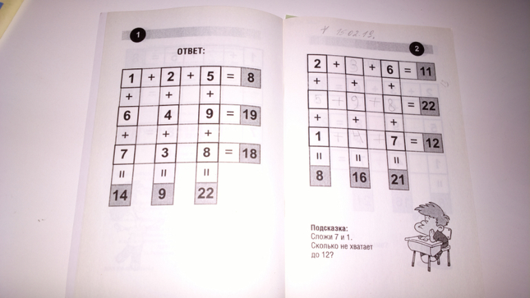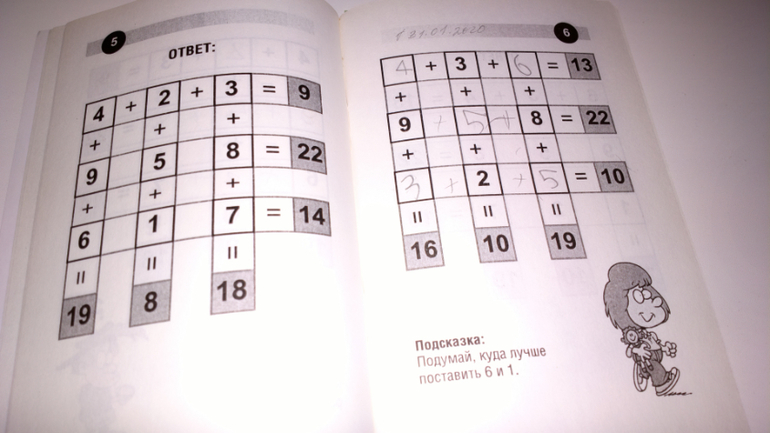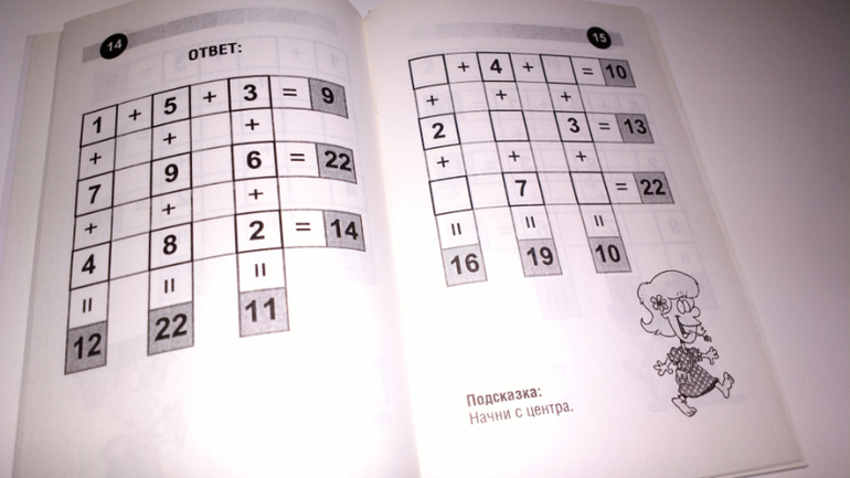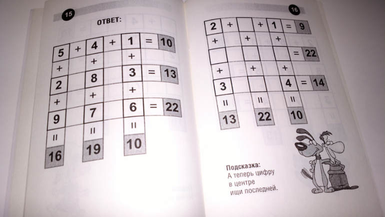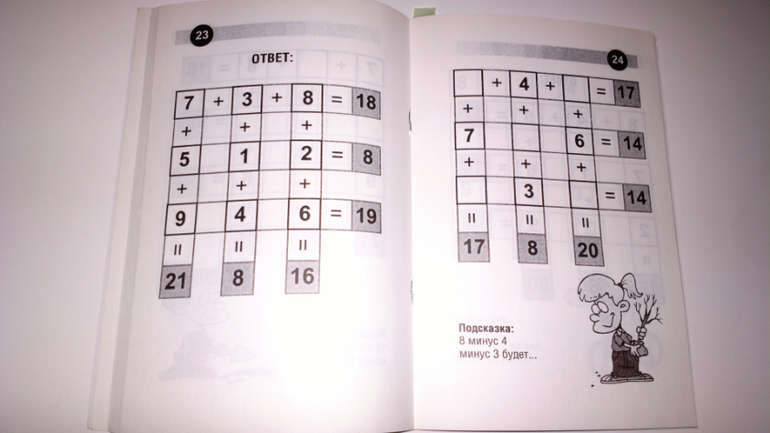 Не подумайте, что я такая вредина и придираюсь к пособиям, хотя, не без этого, но все же, я бы назвала это не сборником головоломок на сложение, а сборником математических кроссвордов.