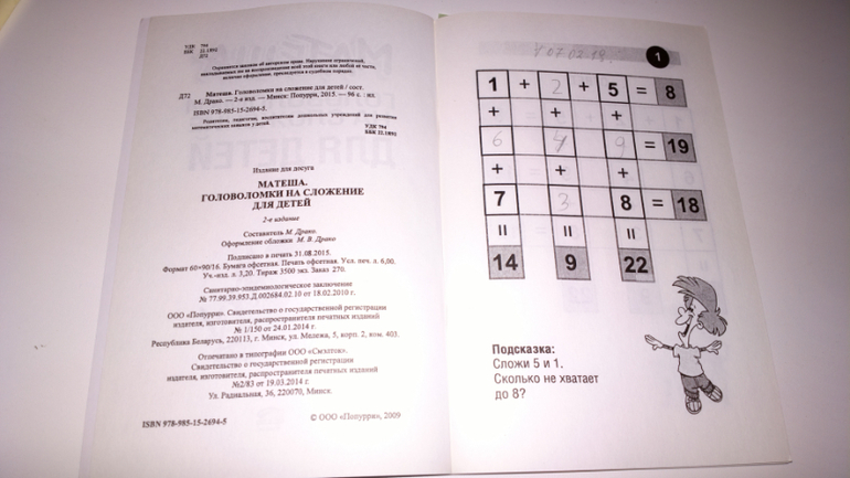 "Матеша. Головоломки на сложение для детей" можно в Лабиринте, на Озоне, в my-shop.