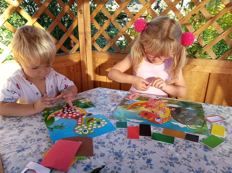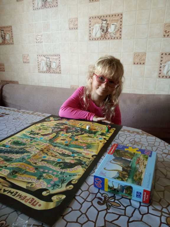 Дочка еще собирала пазл с динозаврами, но там быстро собрала и разобрала, что я даже сфоткать не успела.