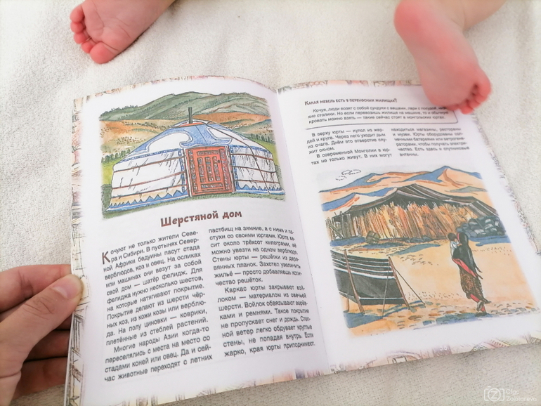 Необычные дома мира - для общего развития, как говорится. Симпатичная, интересная книга, рассчитанная на возраст постарше из-за довольно большого объема текста, не разбитого на кусочки (окошки, диалоги, "комиксы" - так пока нужно нам в 4 года).