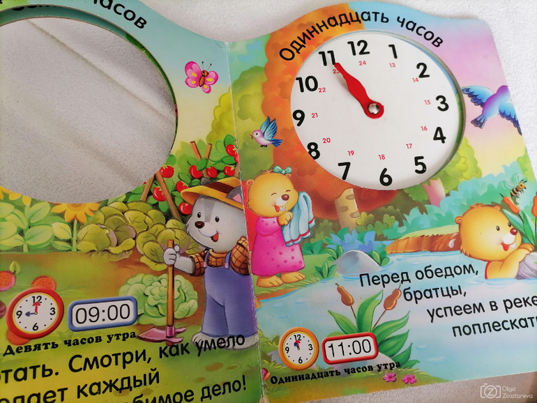А второе направление живого интереса - время, не заслужило нормальной энциклопедии, поскольку не встречалось мне такой. Да и рано ещё рассматривать время во всем его многообразии. А для того, чтоб разобраться (в который раз) со стрелками часов, Лида выбрала в библиотеке малышковую книжку. Читаешь стишок, смотришь картинку - выставляешь стрелки часов. Потом ещё позанимались с раскраской Барашек Вгорошек (Clever) - та же структура. Даже не знаю, стоит ли покупать/распечатывать что-то ещё или пока подождать.