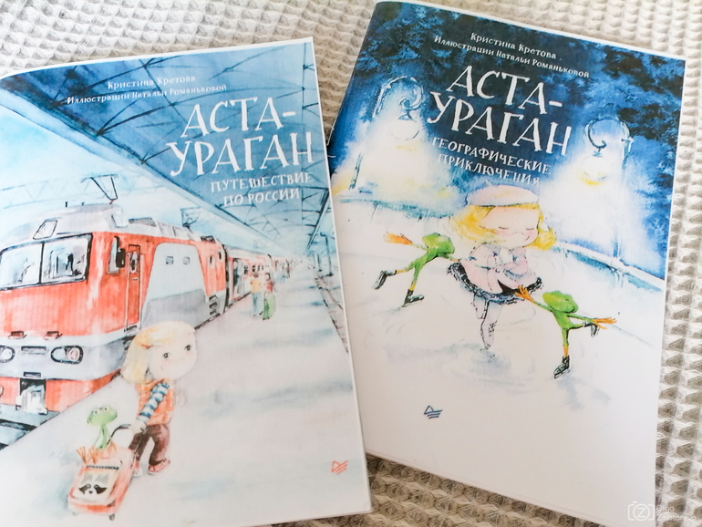 Аста ураган, первая и вторая части. Читали в поездке-походе. Истории про девочку, которую неожиданно подхватывает и уносит в дальние края ветер, не могли оставить Леденца равнодушной. И всё же, как мне показалось, книги мы читали рановато: слишком много в них информации географического толка, замешанной в сюжет вскользь, мимоходом. При отсутствии базовых знаний все эти факты лишь отвлекают, и проверка показала, что ничего не запомнилось по итогу.