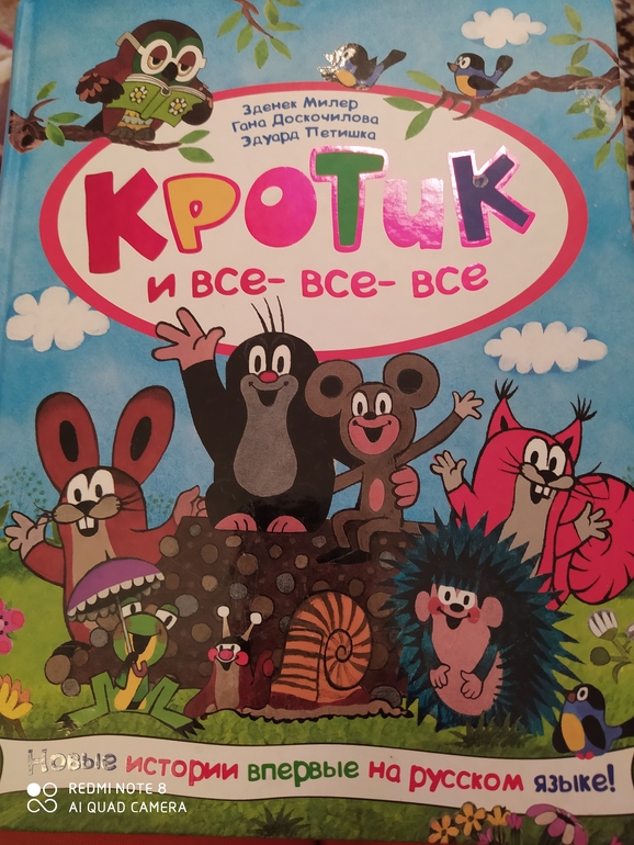 Приехали в город с дачи. И Арина сразу притащила своего любимого Кротика. Варя тоже любит истории про него. Самая любимая - про автомобильчик)