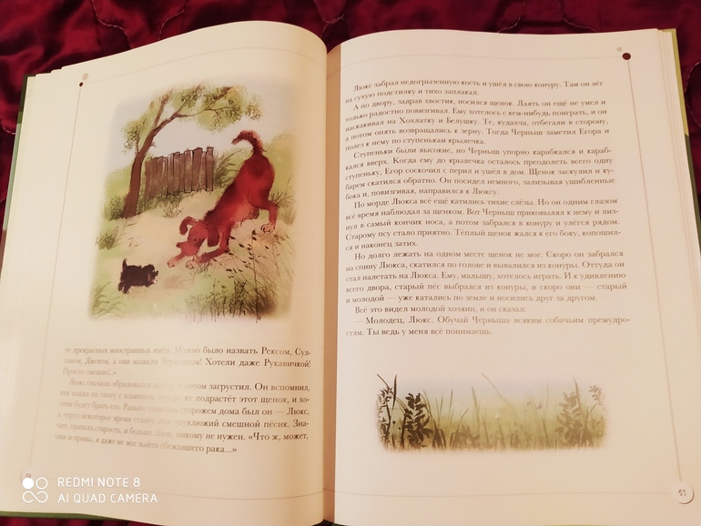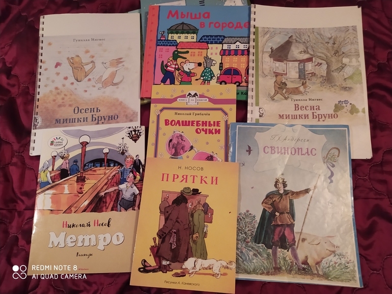 Арина просила читать сказки, а Варя начала слушать Носова. Я сама в детстве его очень любила. Читали тоненькие книги Носова, и я нашла свой старенький сборник рассказов Носова. Оказалось, книга даже с цветными иллюстрациями. Варя хорошо слушала, смеялась. Самые любимые истории - " Веселая семейка" - как ребята вырастили в инкубаторе цыплят, и "Дружок" - про щенка, которого везли в электричке, а потом поменяли чемоданы, и щенок потерялся.
