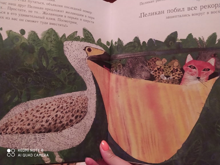 В джунглях чудесный сюжет - как разыграли всех зверей, чтобы съесть их в финале. Но добрый слон помог избежать этого. И какие прекрасные иллюстрации))