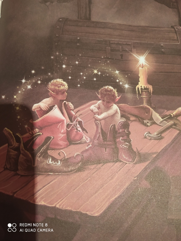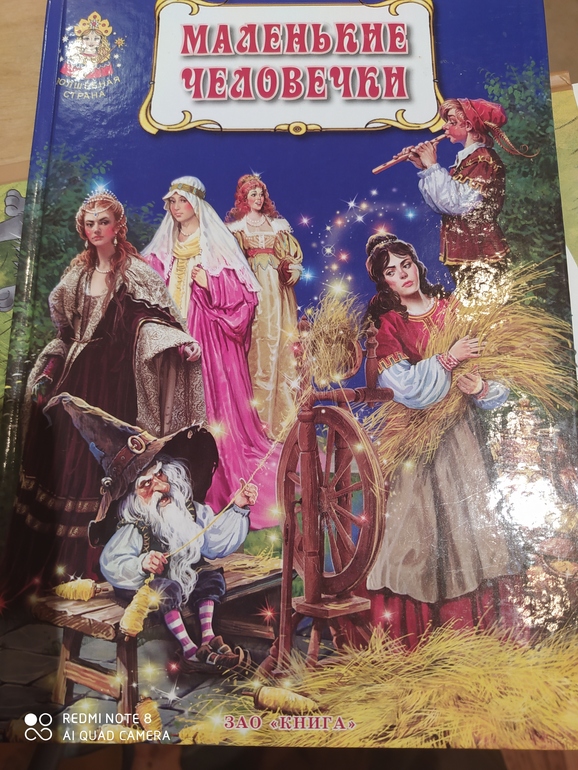 На волне любви к человечкам прочитали книгу сказок братьев Гримм " Маленькие человечки". Здесь тоже есть сказка про портного и человечков, но здесь их всего двое. И иллюстрации темноватые. Сказки все понравились, некоторые мы раньше с Варей читали. Арине кроме человечков, очень понравилась сказка " Румпельштильцхен", про девушку, которой помогали маленькие человечки прясть золото из соломы.