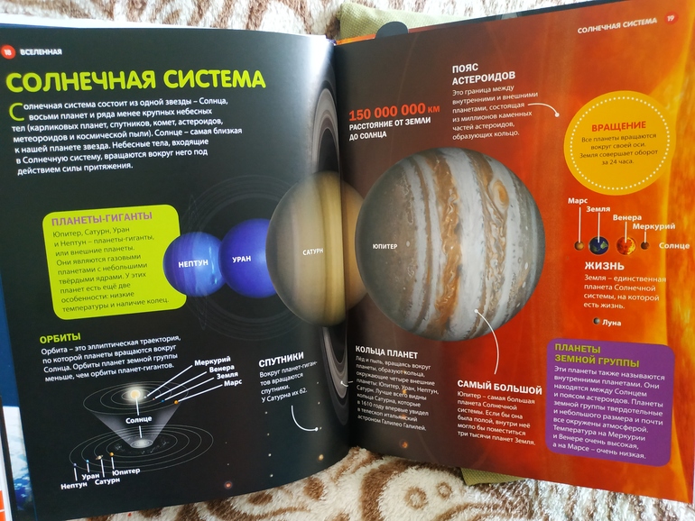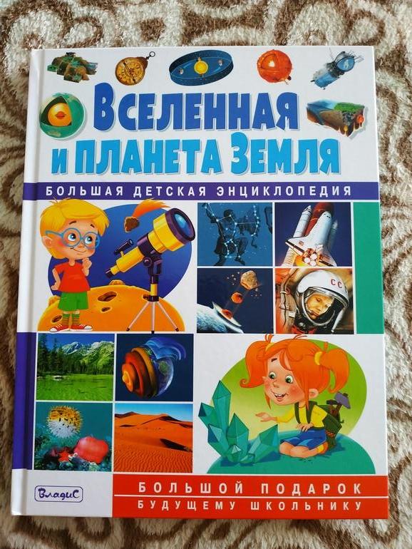 Вселенная и планета земля. Большая детская энциклопедия. Интересная книга. Дочка сама сразу стала читать, как увидела у меня эту книгу. Особенно про минералы ей понравилось.
