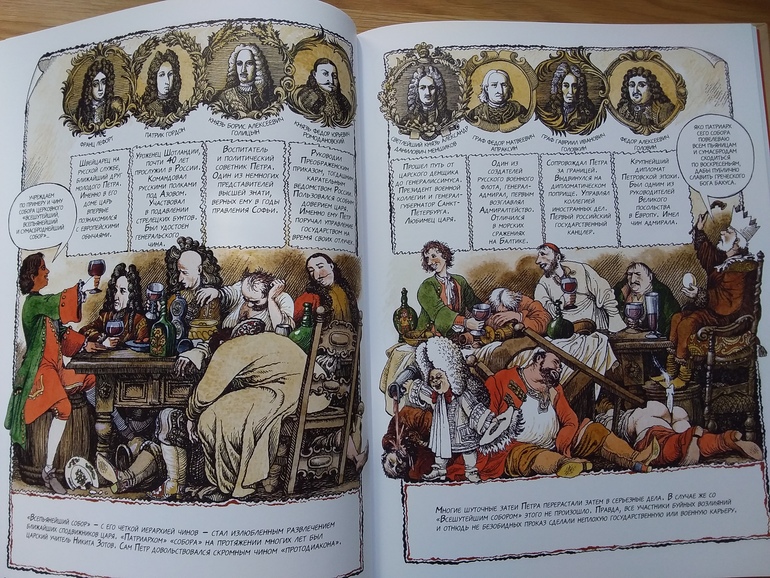 Пётр Великий ("Арт Волхонка"). Когда мне было лет 12, мне подарили книгу про Петра, и я ее запомнила на всю жизнь. Но книжка была клееная и рассыпалась на страницы. Совсем недавно книгу переиздали, и я посмотрела на нее уже взрослыми глазами. Ну что сказать? Иллюстрации тут СОВСЕМ не детские!