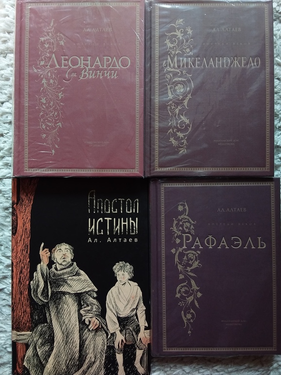 Изначально купила из-за 70 % скидки и имён на обложке. Отличные книги, где в художественной форме рассказывается о великих людях и параллельно рассказывается о эпохе в которой они жили. Позже докупила о Галелее "Апостол истины". Читаю я эти книги и понимаю , как я мало знаю (( У меня есть привычка, после прочтения мне надо с кем-то обсудить, что особо меня заинтересовало. И тут под "удар" попадает муж )) дети иногда тоже слушают, так после Галилея с дочкой обсуждали чуму.
