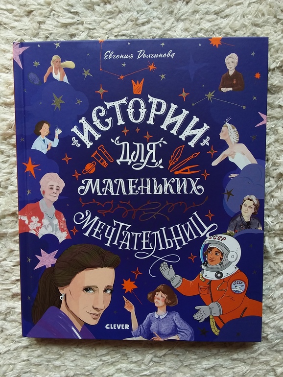 Долгинова. "Истории для маленьких мечтательниц". Немного информации, на каждую героиню по развороту, читается легко. Главное, целая книга о женщинах! Какие мы можем быть храбрые, умные, упорные, яркие...