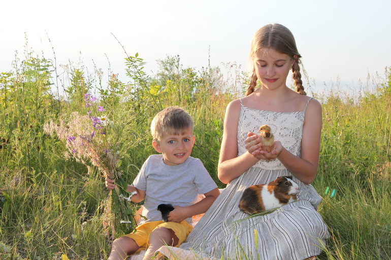 Я много фотографировала, провела фотосессии в полях,с цыплятами и в подсолнухах.