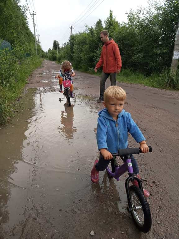 Катались на велосипедах и беговелах и измеряли лужи в резиновых сапогах