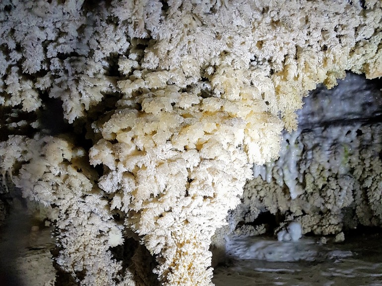 Первым пунктом на нашем пути была пещера - Hermannshöhle. Примечательна совершенно потрясающей камерой кристалов, скелетом медведя, коих (скелетов) там было обнаружено немеряно и тем, что это единственное место в Германии, где живут амфибии - протеи (на лицо ужасные, добрые внутри, людям не показываются, и не надейтесь, числом до семи штук; дожив до шестидесяти лет, они-так решили размножиться и отложили яйца. Ждём-с!) А, еще там зимуют летучие мыши, мы их видели парочку. Раньше туда можно было только с экскурсией, сейчас без, чтобы не создавать толпы. В качестве компенсации разрешили фотографировать, но только в двух, далеко не самых живописных точках.