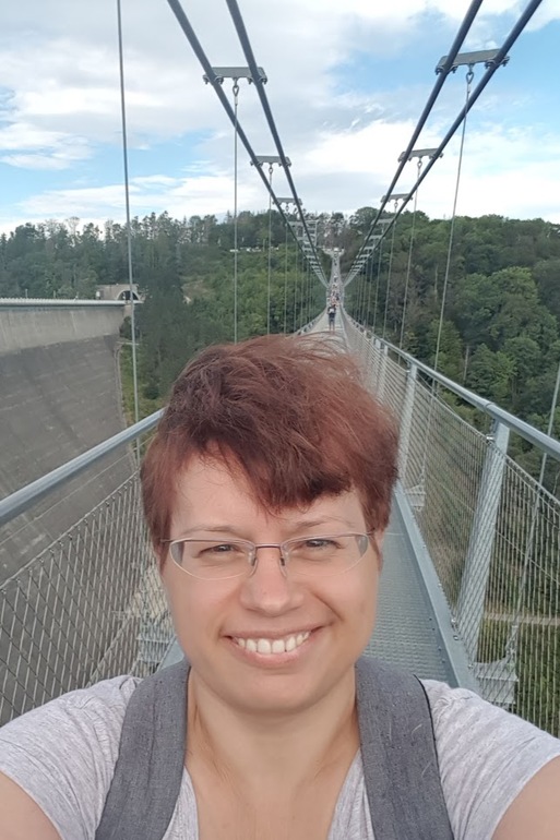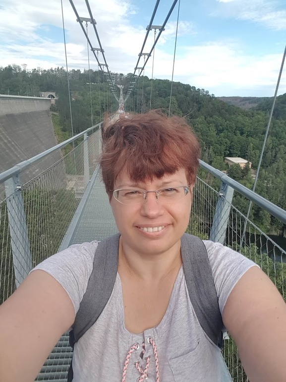 На второй день, прямо с утра - на тот самый мост. 450 метров длиной на стометровой высоте над водохранилищем в Харце. А мост качается... А я иду. Страшно, аж жуть, не смотрите, что я улыбаюсь. Но я так горжусь собой, что смогла!