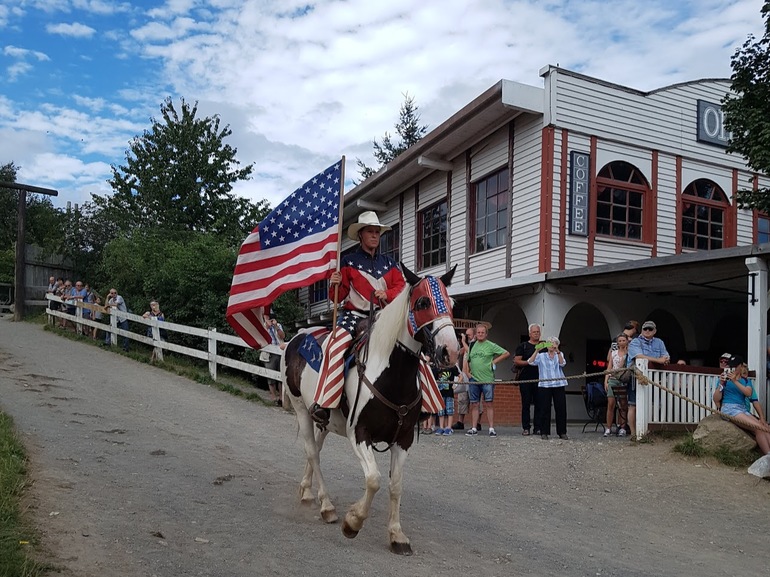 Там мы и провели вторую половину дня. Прокатились на повозке вокруг всего парка, съели по бургеру, посмотрели шоу наездников, шоу лассо, большой костюмированный спектакль об истории Америки, Катя проехалась на пони, мы заглянули в музейчики и магазинчики.