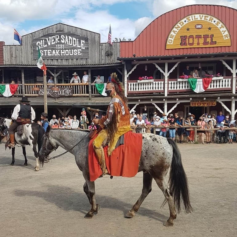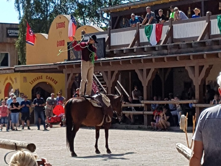 Из пещеры мы поехали в Pullman City - это такой индейско-ковбойский городок посередине Германии. Длиннорогие быки и бизоны, отважные ковбои и мудрые индейцы ждут вас там. В нескольких музейчиках можно узнать много интересного из истории Америки, а многочисленные шоу не дадут заскучать.