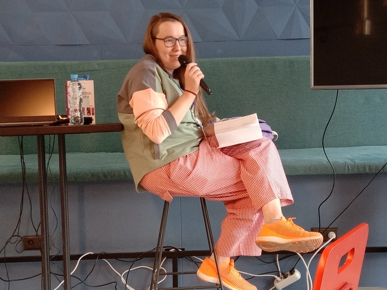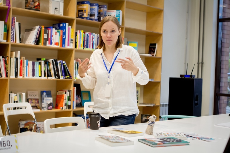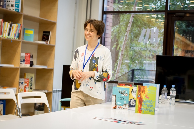 Так. Обсуждение было, переводчик был. Теперь очередь современного писателя. Сначала взрослого. В качестве современного взрослого у нас была сегодня Евгения Некрасова.