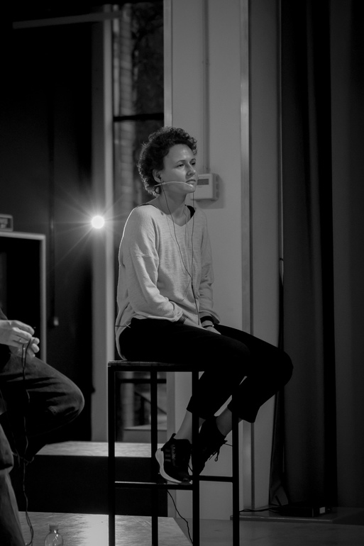 Крайне необычное действо. 5 взрослых людей сидят на сцене, в ушах у них наушники, в эти наушники подается голос, причем никто из них не знает, в какой момент какая и кому придёт реплика, а они повторяют звучащий в наушниках текст. А текст тот непростой. Это размышления реальных подростков на разные темы: отношения с родителями, любовь, школа, работа, политика, жизнь, счастье... Истории из жизни, рассказанные порой убогим языком, со всеми этими "ну типа", временами с матом. Время от времени свет вокруг героев гаснет, загорается экран - и там уже рассуждают сами подростки