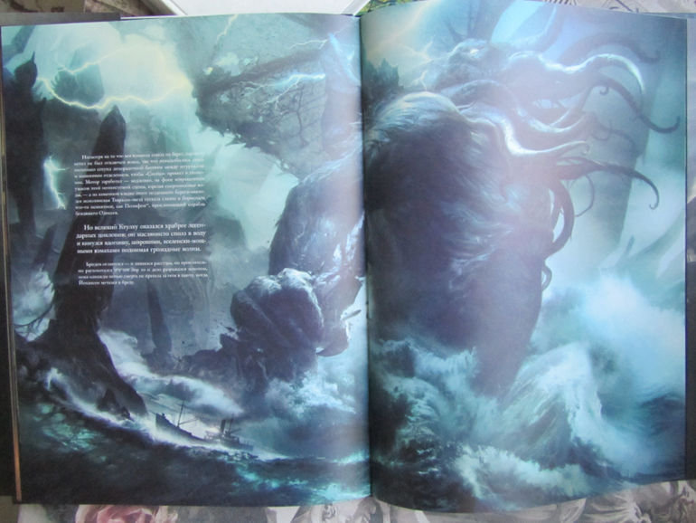Давно хотела познакомиться с Лавкрафтом, а тут такое шикарное издание его самого знаменитого произведения, я не устояла. Это даже не повесть, это рассказ, не особо объемное произведение, написанное в начале 20 века, поэтому не страшно конечно как ужастик. Но сама мысль, которую на мой взгляд заложил автор в это произведение, она вот точно ужасает. На сколько мало люди знают о вселенной и на сколько мы перед ней беззащитны. Иллюстрации великолепные! Я наверное не устою и куплю Хребты безумия в том же оформлении.