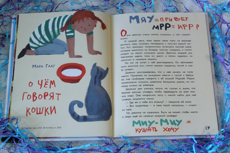 Книга, кстати, отлично издана. Такую на подарок любителям кошек - лучше и не придумать! Шрифт хороший, каптал на месте. У каждой сказки свой автор и художник. Размер чуть меньше А4. Всего в книге 19 сказок.