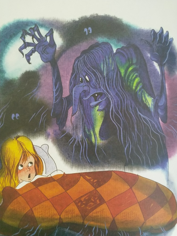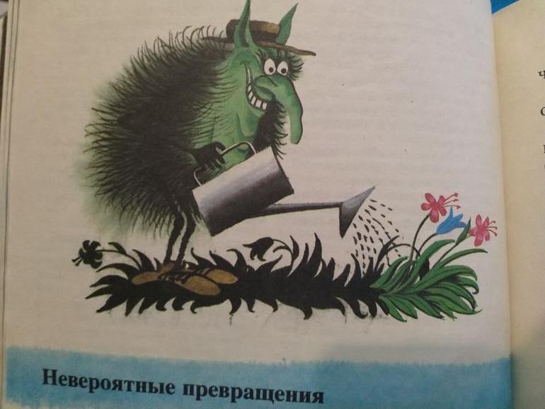 Я не помню эту книгу, видимо брала её в детстве в библиотеке или кто-то давал почитать, но вот этот зелененький вызвал у меня такую ностальгию! До боли знакомый персонаж. Теперь хочу найти ее.)