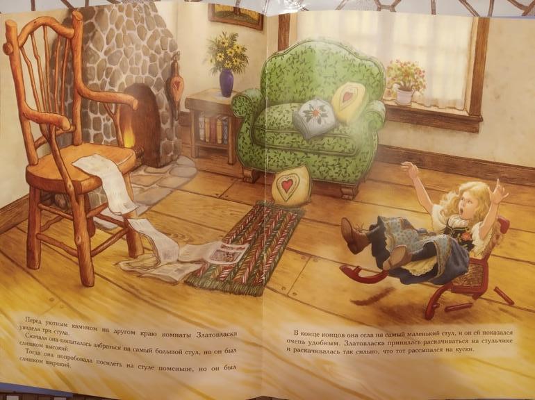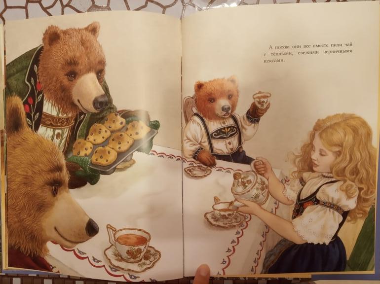 Пожалуй, такое завершение истории мне нравится гораздо больше, чем классическое, где девочка, набедокурив, просто убегает через окно. Златовласке же пришлось исправить свои ошибки, что и помогло ей в итоге подружится с медведями.
