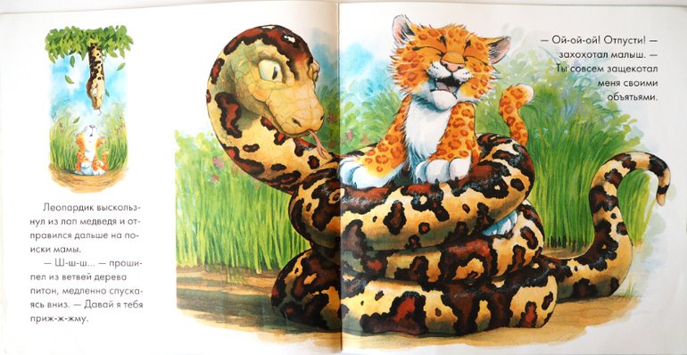 "Самые нежные объятия в мире" очень-очень классная. Читали её ещё в ту пору, когда я могла с лёгкостью подбрасывать дочку вверх, как обезьянка леопардика из книги. Для каждого зверя у нас были свои обнимашки. Люблю эту книгу. Твёрдой обложки ей не хватает, конечно.
