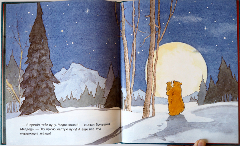 "Как медвежонок солнце искал" - неимоверно красивая книга. Цветовая гамма притягивает взгляд. История без особой морали, но всё равно достойная, очень советую на 3+.