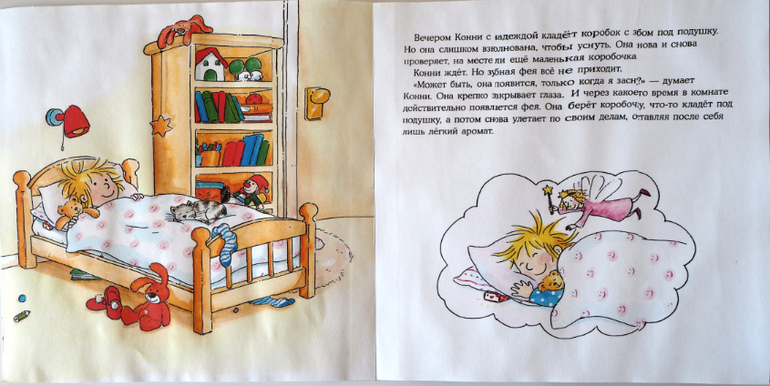 "Конни и зубная фея" (у нас она самиздат) очень актуальная для дочки история про выпадение молочных зубов. Каждая смена зуба проходит с волнением, книгу достаём частенько.