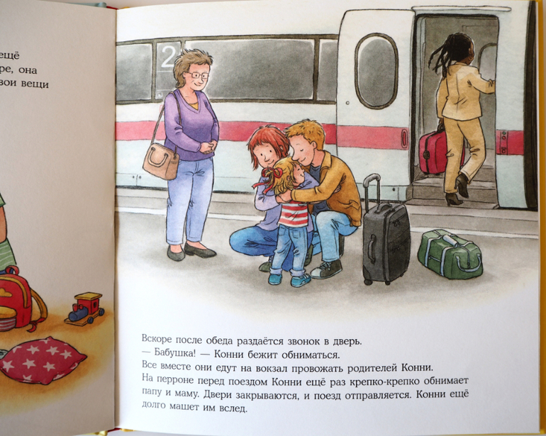 "Конни в гостях у бабушки с дедушкой" про то, как родители уехали на выходные отдохнуть, а Конни впервые осталась ночевать у бабушки и дедушки.