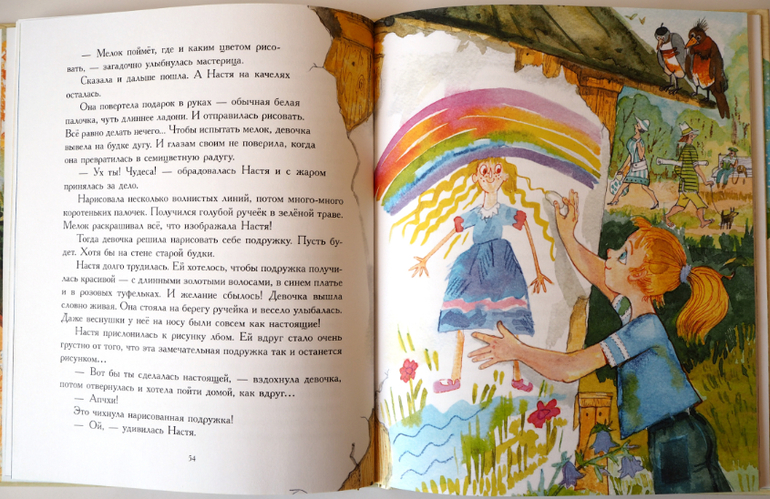 Это книга "Мастерица Мария". Сразу оговорюсь - она может показаться скучной, лучше ознакомиться немного с текстом. Но нам понравилась ОЧЕНЬ! Настоящее волшебство, доброе. Давно я с таким удовольствием не читала книги. Уютная, тёплая, фантазийная. Каждая история легла на душу. Дочке особенно понравились про паучка Сеньку и про волшебный мелок. Иллюстрации очень гармонично сочетаются с текстом. Обязательно будем перечитывать, планирую покупку и других книг автора.