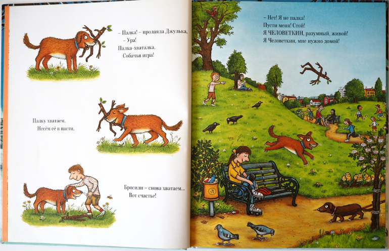 "Жёлтый каяк" сделала исключительно ради необычных иллюстраций. Книга ни о чём... Возможно на 2+ подойдёт лучше, тут мне сложно судить.