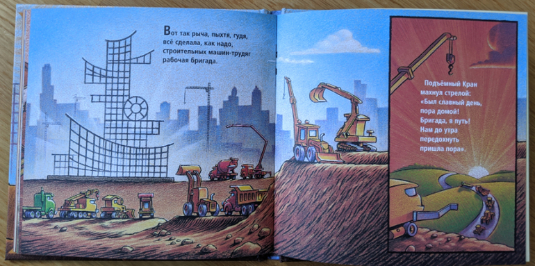 Эту книжку ждали довольно долго из закупки, и сын ее уже перерос, прочитали пару раз для порядка, но восторга, как Стройка баюшки-баю не вызвала.