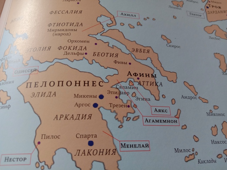 и даже карта, на которой обозначено, кто из героев откуда родом