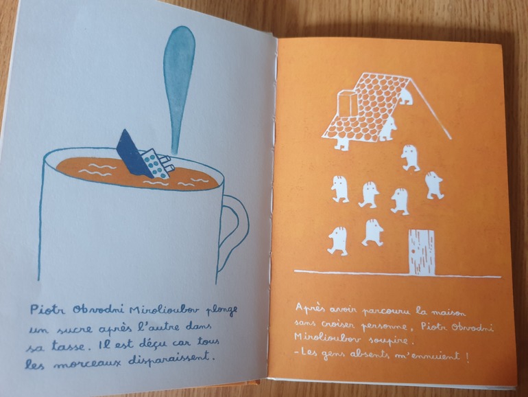 Он страненький такой, похож на Филина Лобела. То домой вернётся, чтобы проверить, точно ли он ушёл. То ищет, на каком дереве заканчивается лес... Книжка-расчитайка, но с ужасным для этой цели шрифтом.