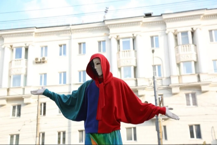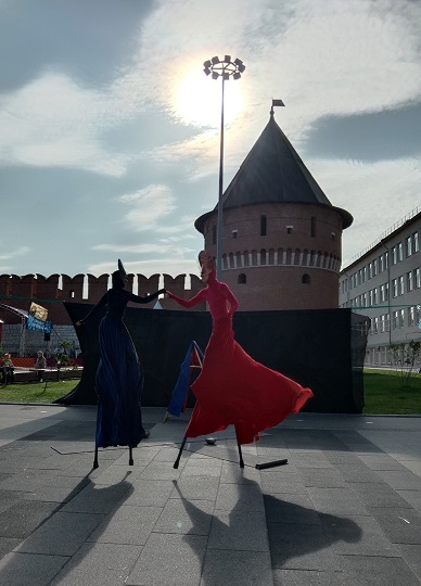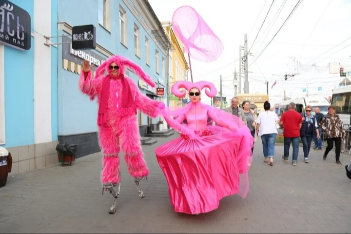 С театрального фестиваля. Вот такие у нас прямо по улицам разгуливали:
