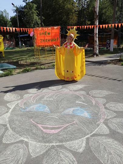 В последний летний день я часа полтора ползала по раскаленному асфальту, рисуя осеннее солнышко. А в первый день осени сама им стала))