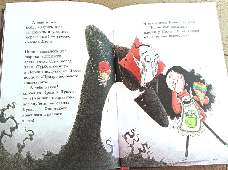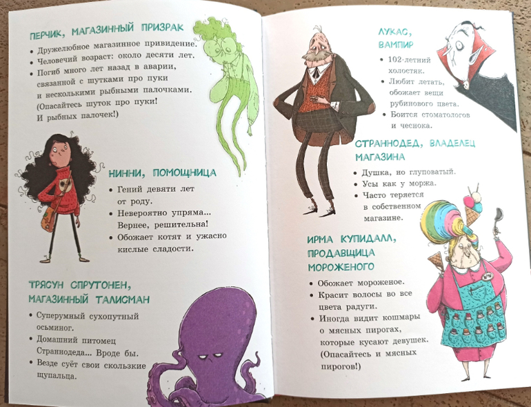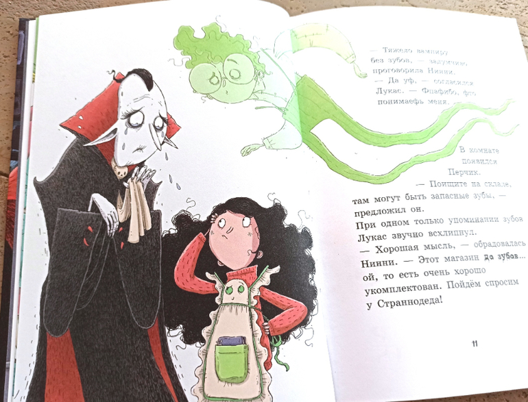 «Девочка Нинни опять приходит в лавку кошмаров и ей вампир говорит: кто-то украл мои зубы. И они обнаруживают то, что у них нет и других вещей. Нинни говорит, что надо составить список, в котором написано так: