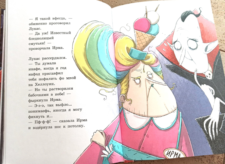 Вещи пропавшие за последние дни: зубы вампира, оперный плащ, чеснок (найден в мусоре), пудра и кисточка Ирмы (Ирма это продавщица мороженого), книга про вампиров найдена (найдена вся в слизи), ум некоторых знакомых (вернуть его, пожалуй уже невозможно ). Пока они их находят и узнают, кто за этим стоит, бегая по разным комнатам. И в последней они находят, кто за этим стоит. А кто за этим стоит, вы узнаете, прочитав эту книгу.