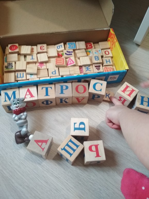 Чаще всего мы просто составляем друг для друга слова из магнитных букв или кубиков, обязательно по очереди)
