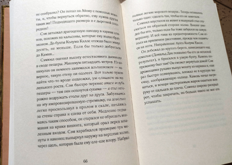 Книга толстая, увесистая. Шрифт крупный, удобный. Главный недостаток книги (для меня) - теперь я прожить не смогу без продолжения.
