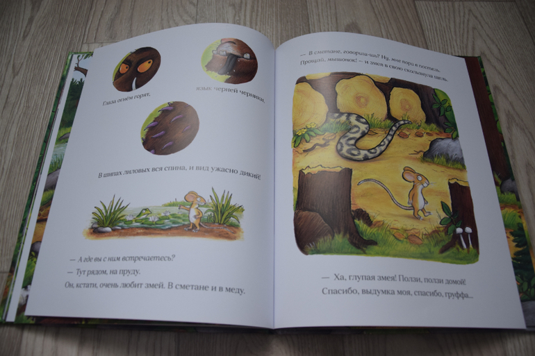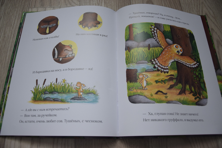 Эту книгу ни разу не прочитали с Сашей до конца. Пока никак. Полистает,послушает пару страниц (начинала и с начала,и с середины). Самой мне очень понравилась книга. Очень интересный персонаж этот Груффало. Интересно,такие чудища существуют?:)