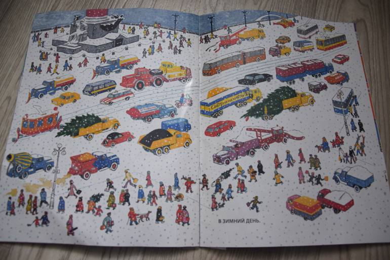 Прото картинки,но изучать машины можно хоть целый день. Больше всего нам нравятся первый разворот ("Утро"), "Зима" и "Ночь". Придумываю истории,рассказываю про машины. Саше очень нравится. Заказала ещё у этого автора "Наш гараж"