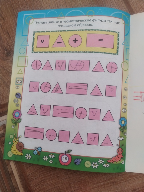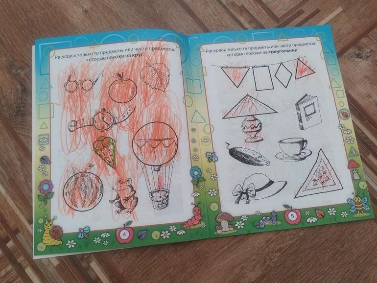 "Геометрия для малышей" (ЗАО "ОЛМА Медиа Групп) частично была сделана со старшей, доделала с младшим. Крупные картинки, много раскрашивать и об водить: