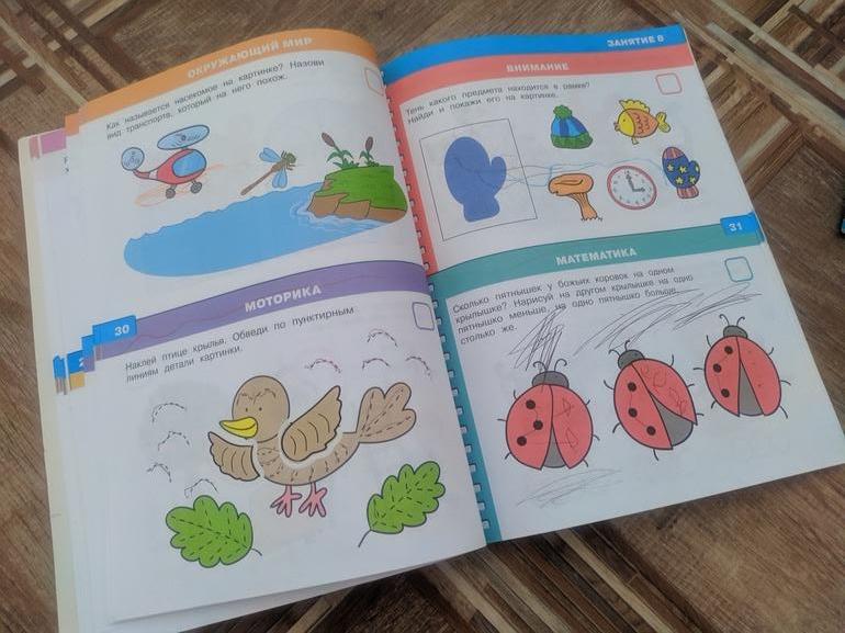 "Грамотейка" содержит задания на развитие внимания, речи, графических навыков, памяти, математических способностей: