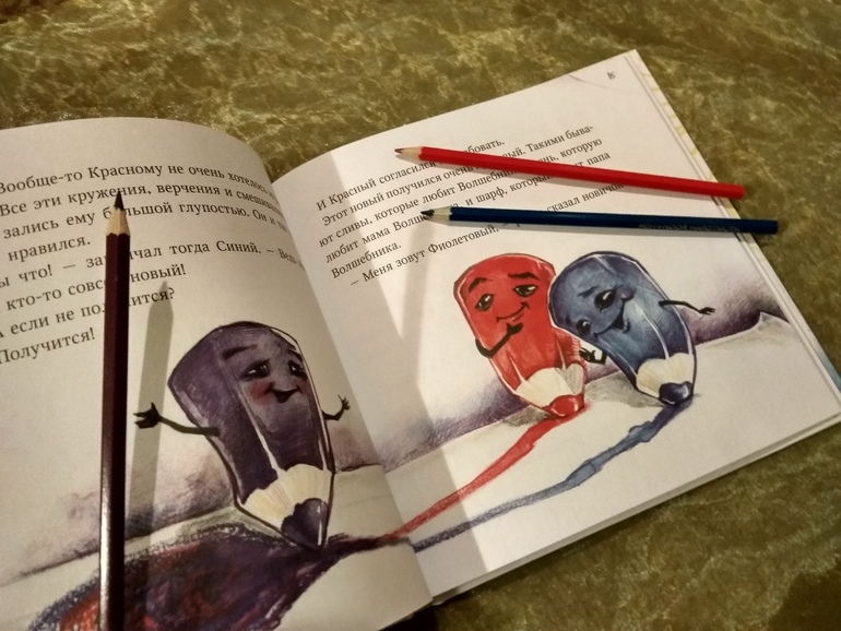 Еще одна книга на ту же тему - цвета, их смешение, взаимодействие и плюс призыв к рисованию это Жили были карандаши Тамары Михеевой. Ее много раз показывали в сообществе, но в последнее время вижу ее все реже в дневниках, а книжка, на удивление, все еще имеется в наличии.